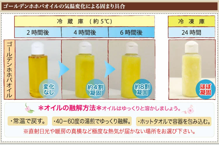 ※商品の特性上、低温になると白濁したり凍ったりすることがありますが品質には問題ありません。暖かい場所に置くか、ぬるま湯につけるなど湯煎してからご使用ください。